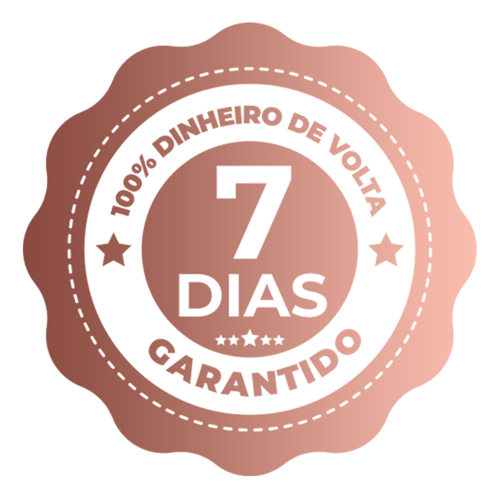 O código de defesa consumidor (Art. 49) garante 7 dias para solicitar reembolso em caso de insatisfação com o produto, Nós confiamos tanto em nosso CURSO que lhe garantimos 07 dias de garantia incondicional!.